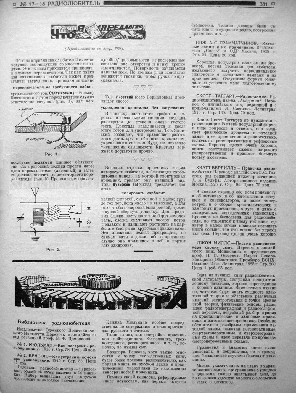 Стр. 33 (381) журнала «Радиолюбитель» № 17–18 за 1925 год