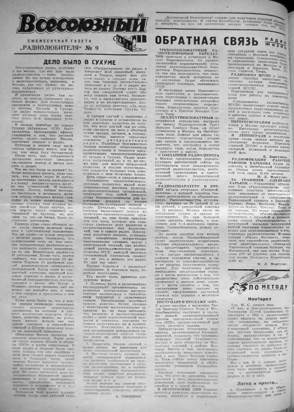 Стр. 20 (336) журнала «Радиолюбитель» № 9 за 1927 год