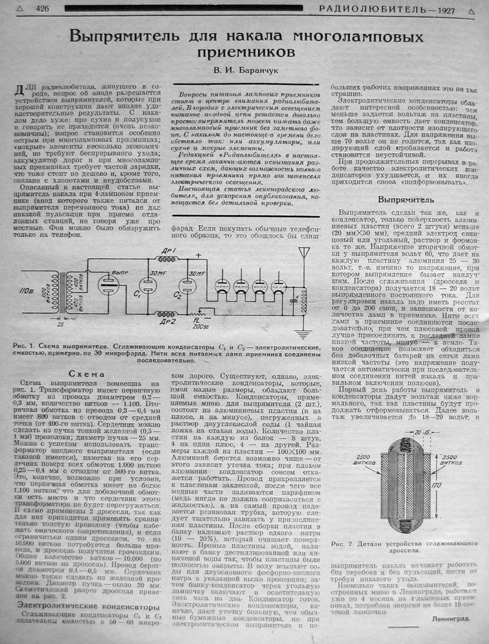 Стр. 30 (426) журнала «Радиолюбитель» № 11–12 за 1927 год