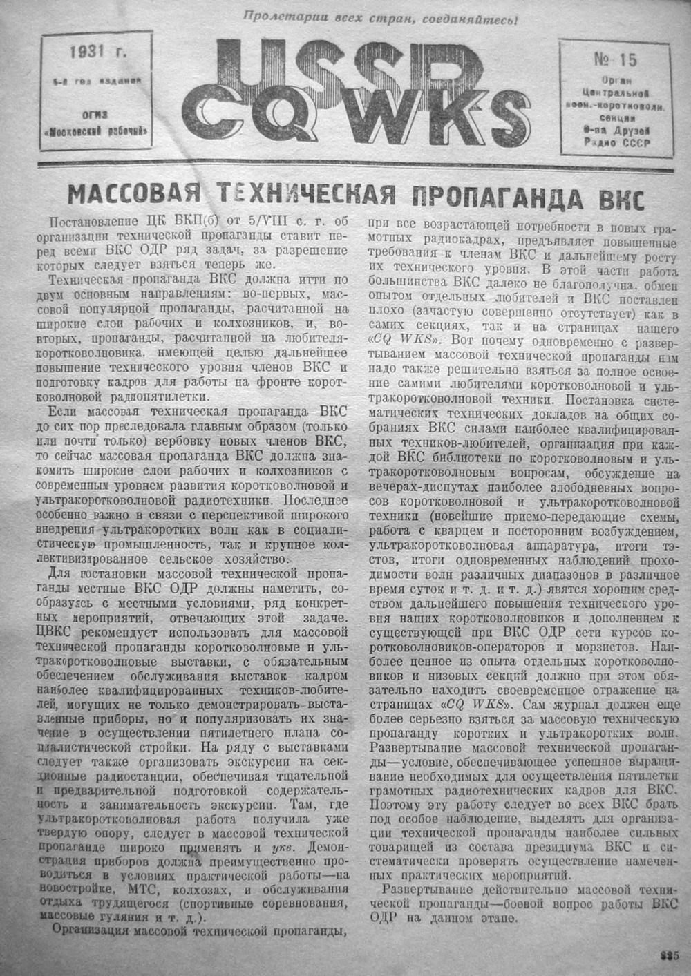 Стр. 61 (885) журнала «Радиофронт» № 15 за 1931 год